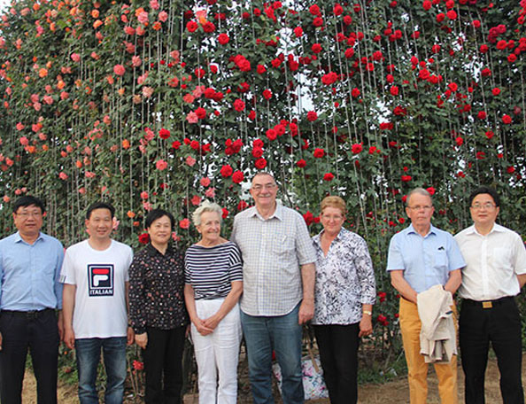 世界月季联合会主席凯文先生、前任主席海格女士及梅兰先生参观中国月季园